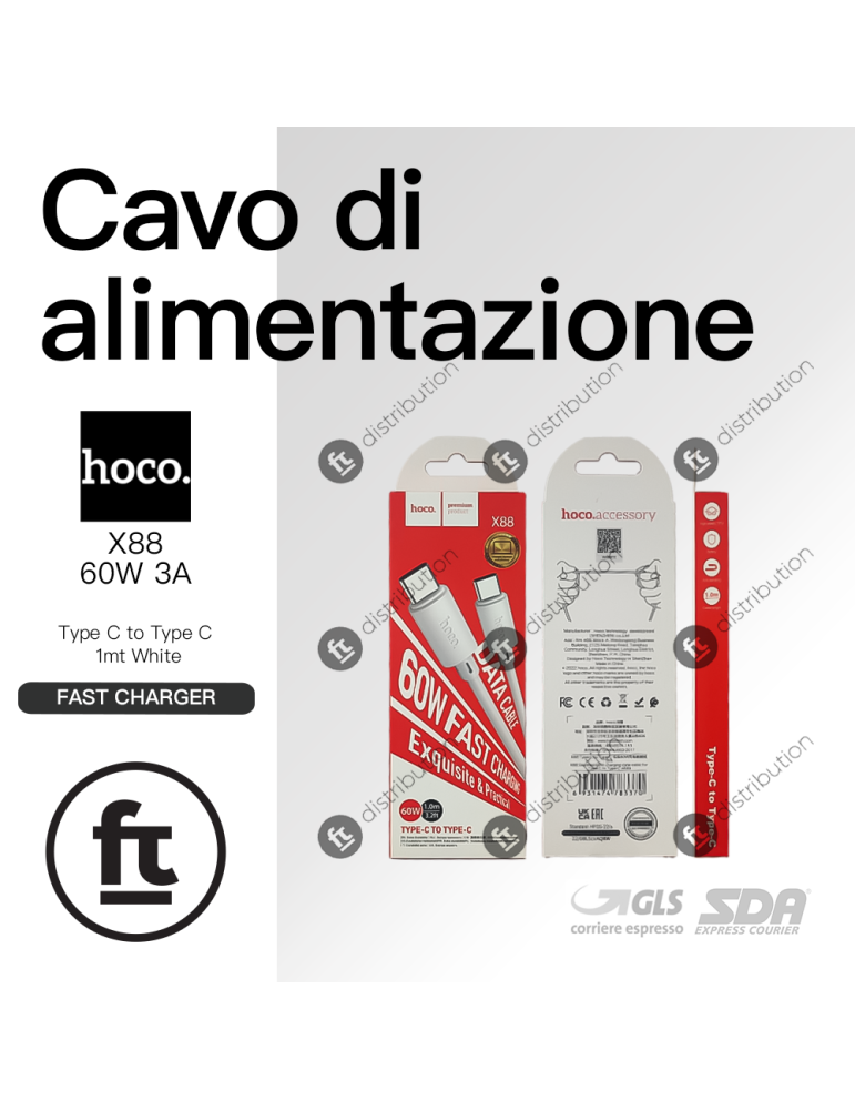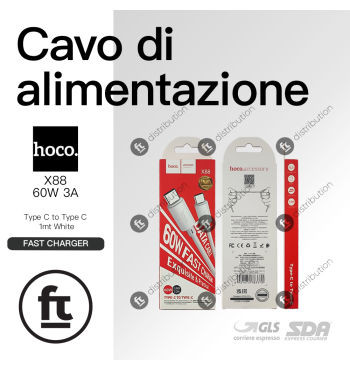 HOCO CAVO CARICA RAPIDA TYPE C - TYPE C X88 BIANCO RETAIL 1mt