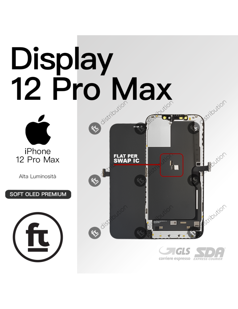 APPLE DISPLAY IPHONE 12 PRO MAX SOFT OLED PREMIUM - IC SWAP PARI ORIGINALE ALTA LUMINOSITA'