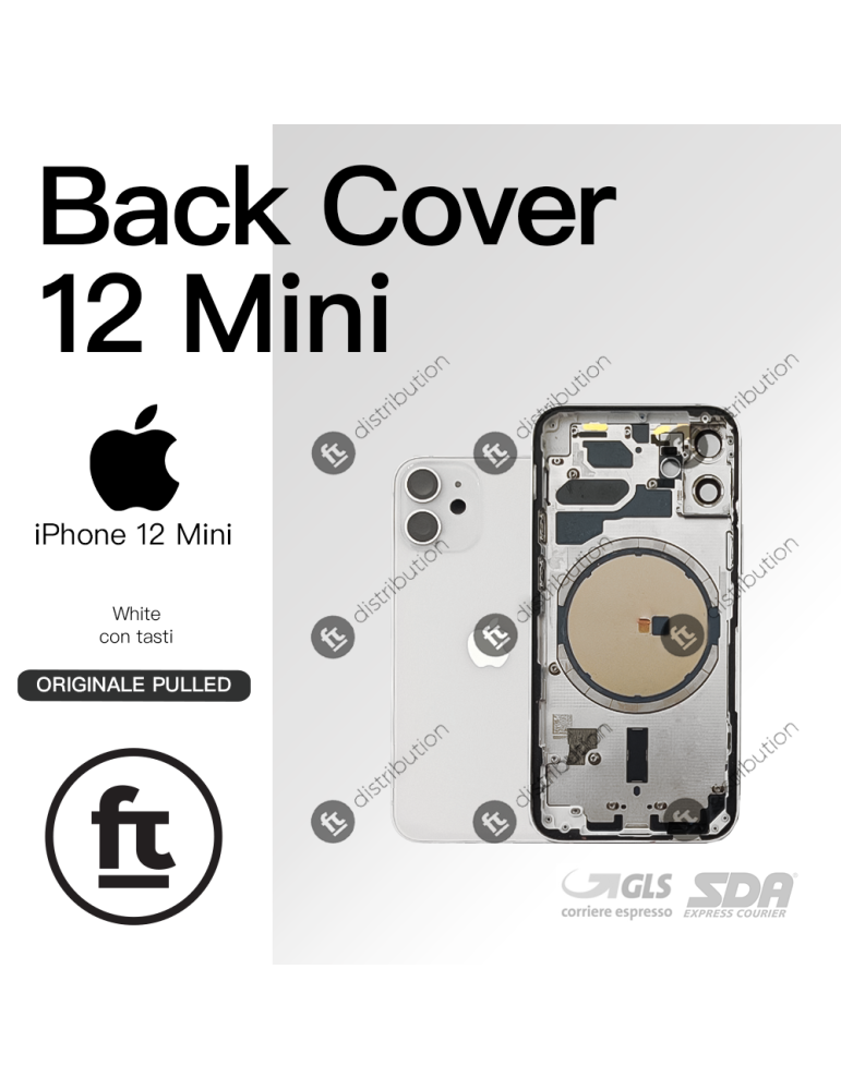 APPLE SCOCCA POSTERIORE IPHONE 12 MINI BIANCO WHITE ORIGINALE PULLED CON TASTI BACK COVER