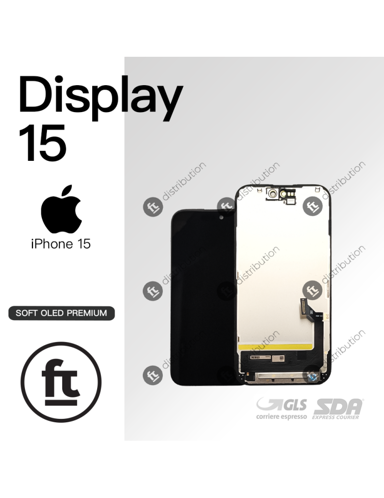 APPLE DISPLAY IPHONE 15 -DD SOFT OLED PREMIUM- ALTA LUMINOSITA' SCHERMO LCD TOUCH-