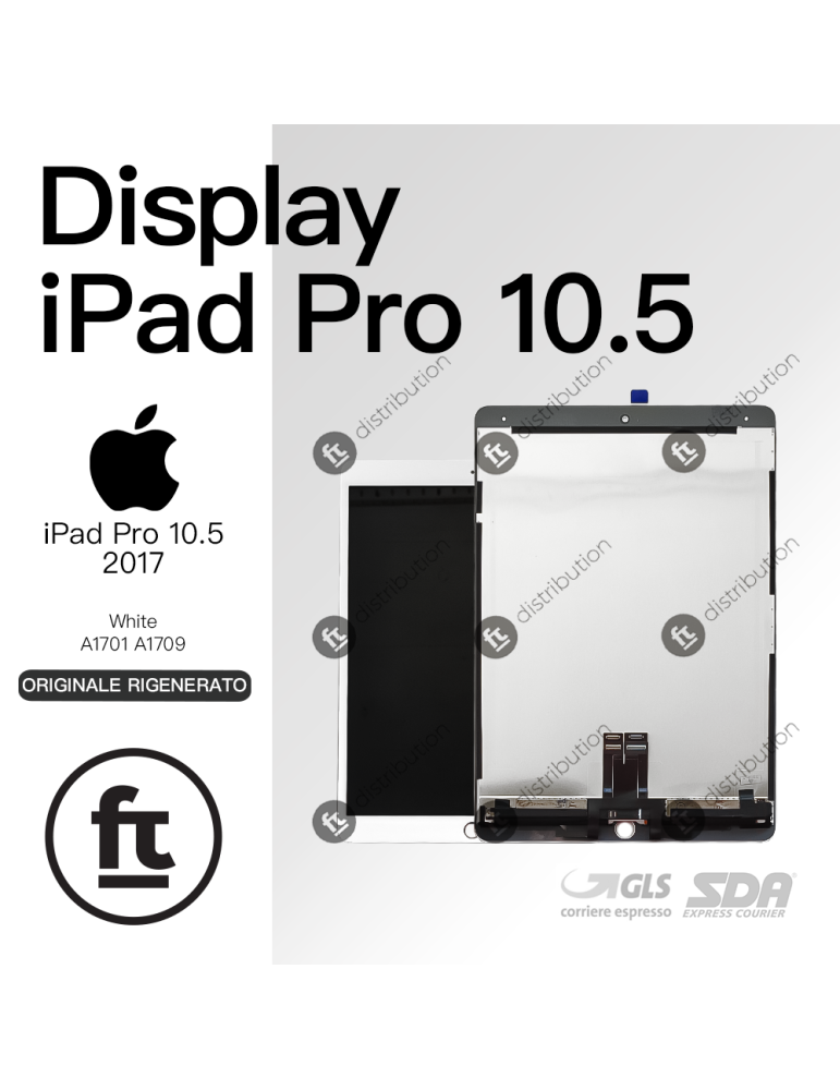 APPLE DISPLAY COMPLETO IPAD PRO 10.5 (2017) A1701-A1709 BIANCO ORIGINALE RIGENERATO TOUCH LCD