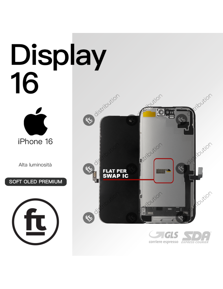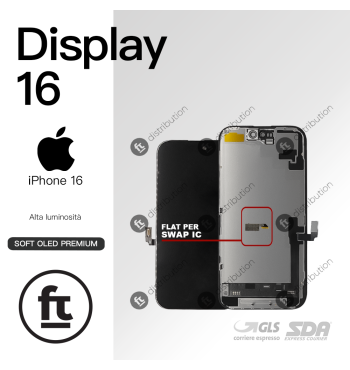 APPLE DISPLAY IPHONE 16 SOFT OLED PREMIUM IC SWAP ALTA LUMINOSITA' SCHERMO LCD TOUCH