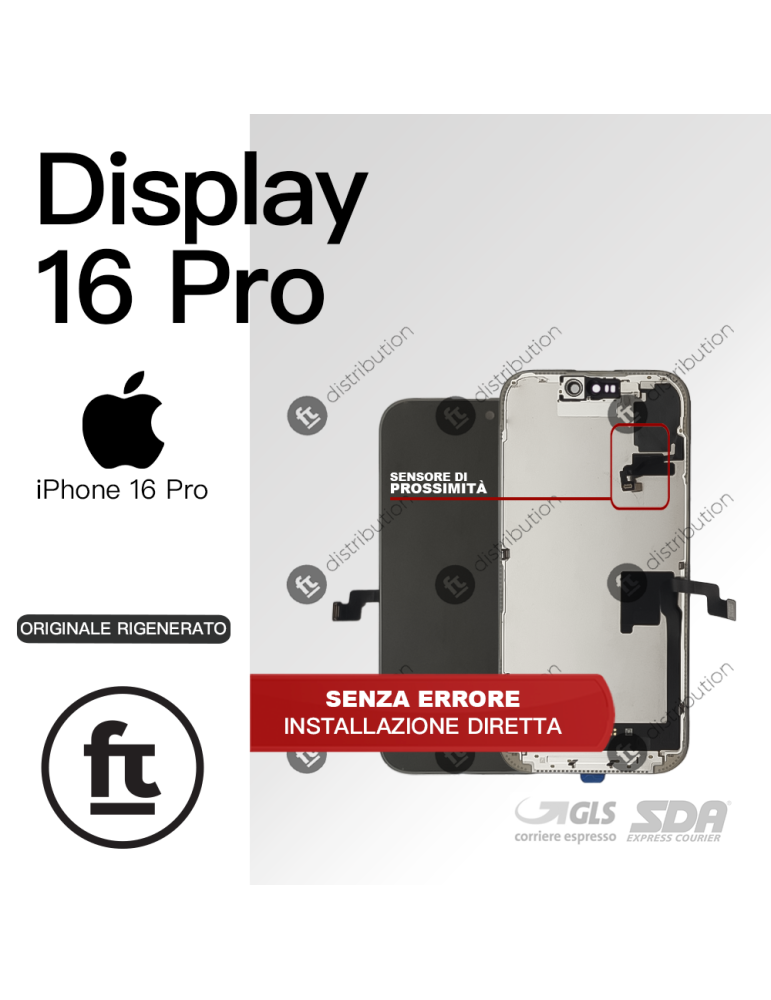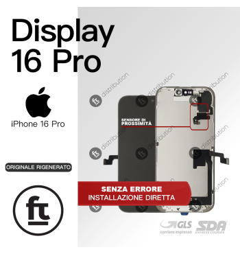 APPLE DISPLAY IPHONE 16 PRO ORIGINALE RIGENERATO+SENSORE PROX NO ERRORE SCHERMO TOUCH OLED