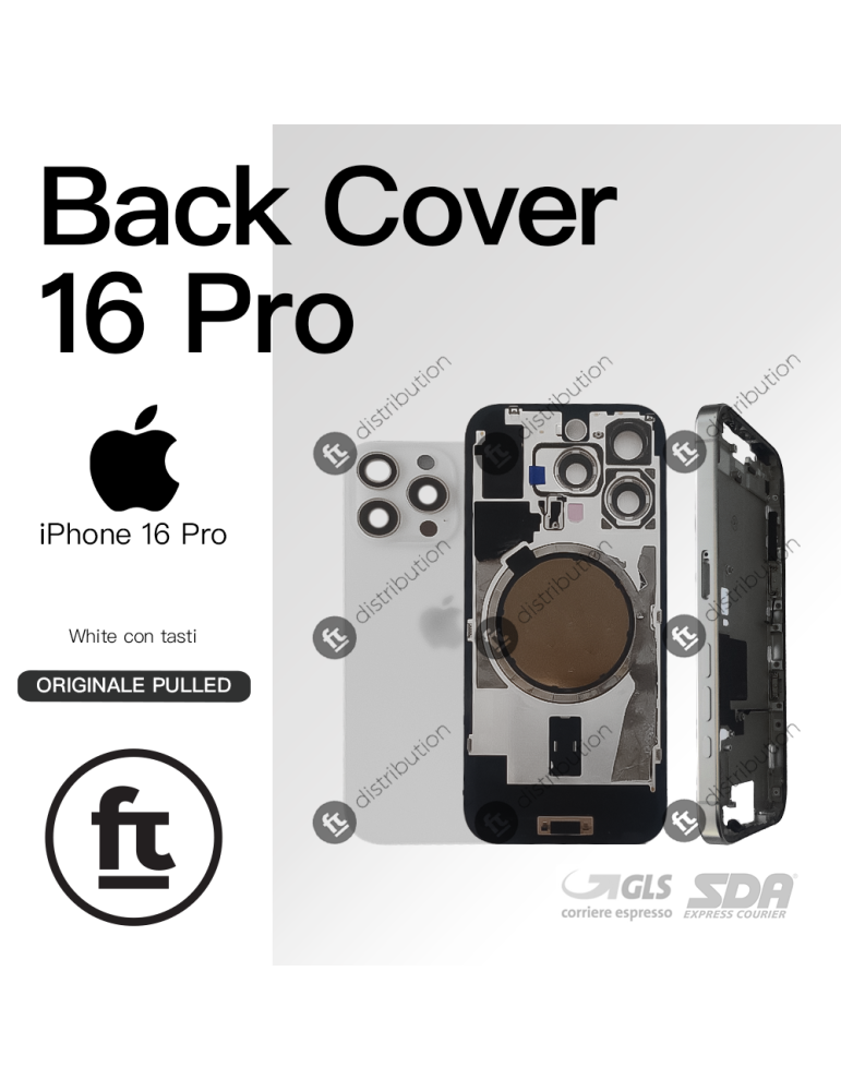 APPLE SCOCCA POSTERIORE IPHONE 16 PRO WHITE ORIGINALE PULLED CON TASTI BACK COVER
