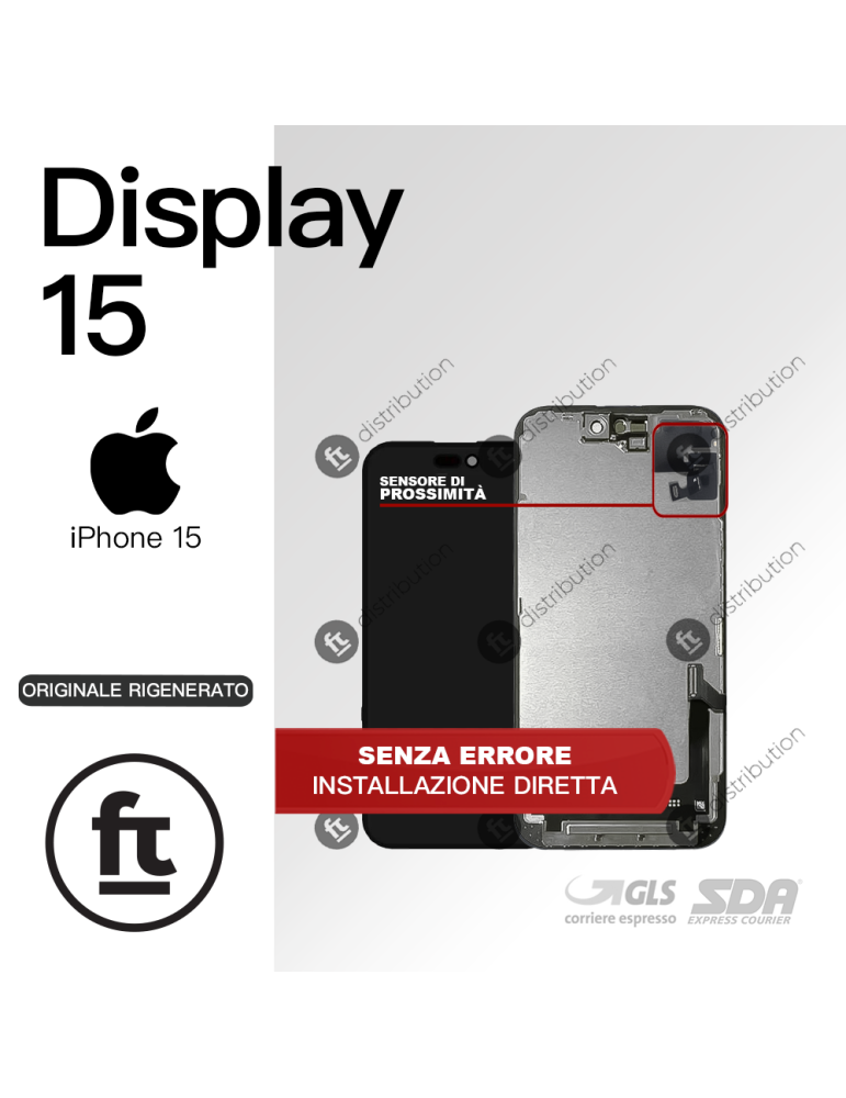 APPLE DISPLAY IPHONE 15 ORIGINALE RIG+ SENSORE PROX NO ERRORE SCHERMO OLED