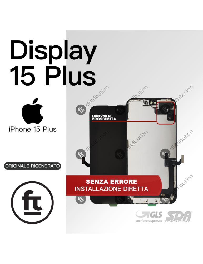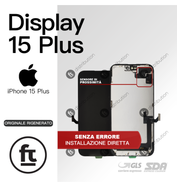 APPLE DISPLAY IPHONE 15 PLUS ORIGINALE RIG+ SENSORE PROX NO ERRORE SCHERMO OLED