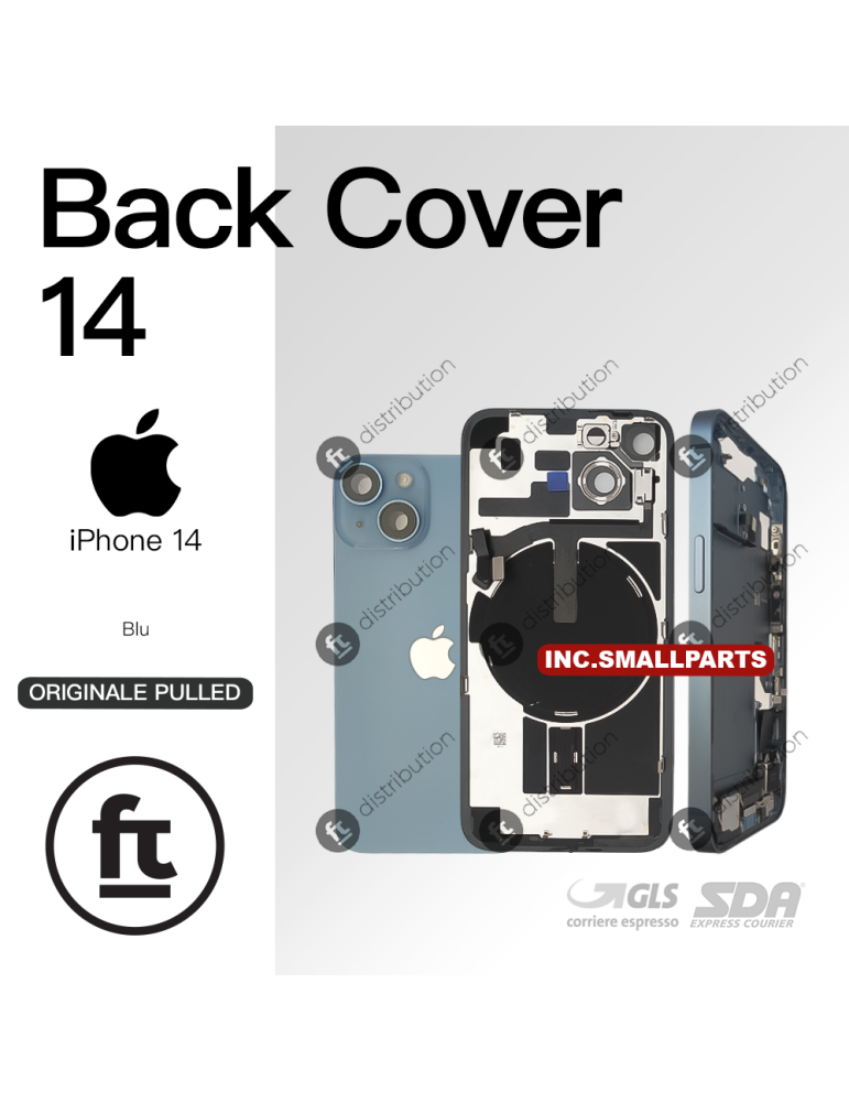 APPLE SCOCCA POSTERIORE IPHONE 14 BLU ORIGINALE PULLED INCL. SMALLPARTS MIDFRAME BACK COVER