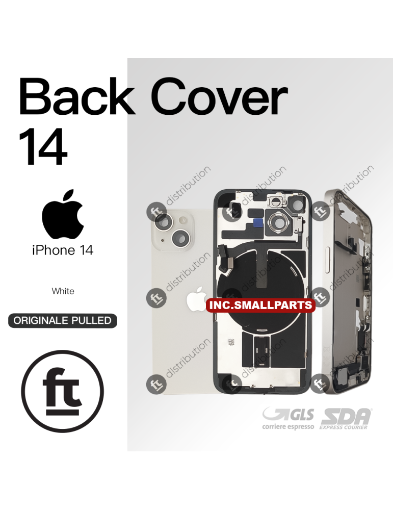 APPLE SCOCCA POSTERIORE IPHONE 14 WHITE BIANCO ORIGINALE PULLED INCL. SMALLPARTS MIDFRAME BACK COVER