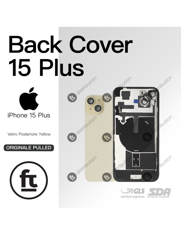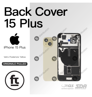 APPLE VETRO POSTERIORE IPHONE 15 PLUS YELLOW GIALLO ORIGINALE PULLED + ADESIVO BACK COVER