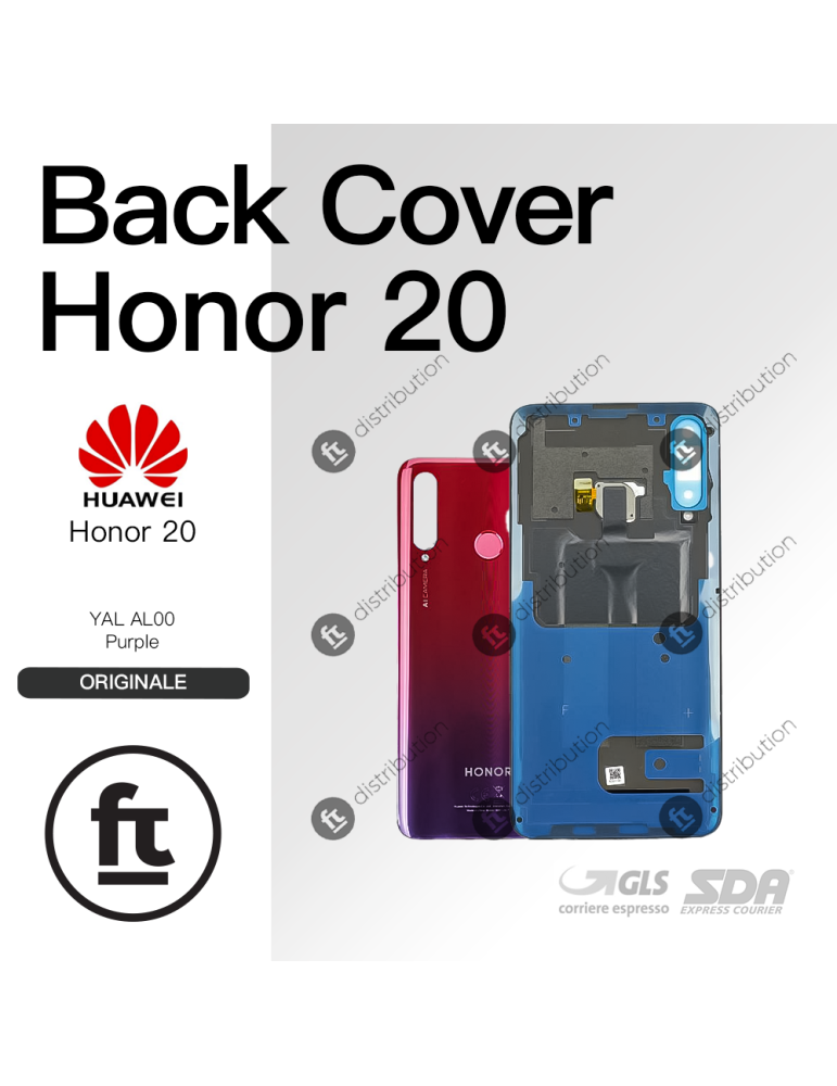 HUAWEI SCOCCA POSTERIORE ORIGINALE HONOR 20 YAL AL00 PURPLE BACK COVER VETRO