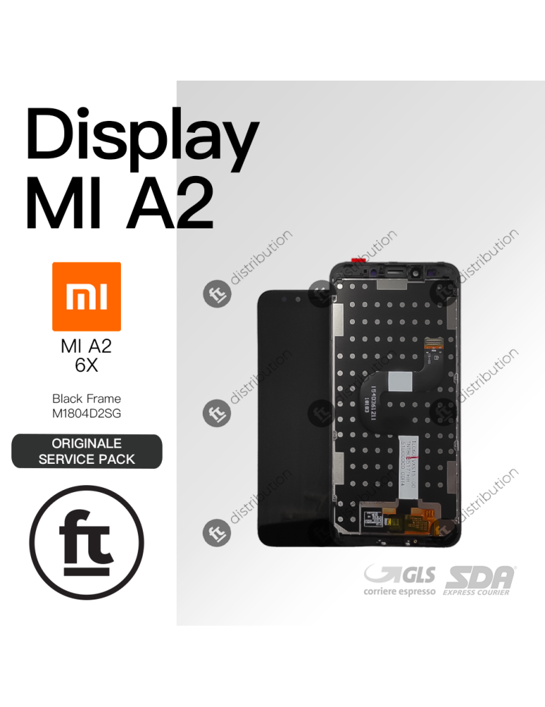 XIAOMI DISPLAY MI A2 6X M1804D2SG ORIGINALE SERVICE FRAME NERO VETRO SCHERMO
