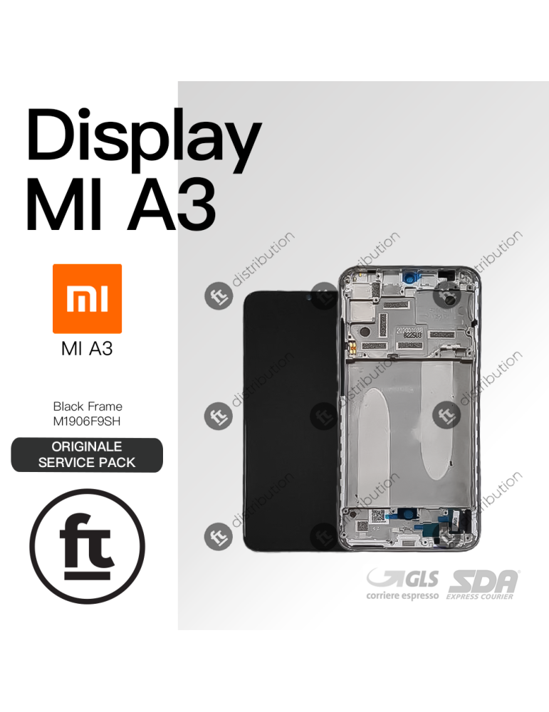 XIAOMI DISPLAY MI A3 M1906F9SH ORIGINALE SERVICE NERO TOUCH SCREEN VETRO