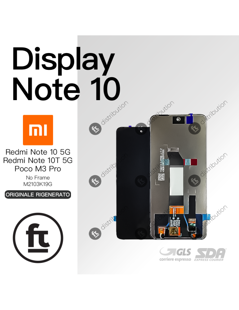 DISPLAY XIAOMI REDMI NOTE 10 5G - REDMI NOTE 10T 5G - POCO M3 PRO ORIGINALE RIGENERATO - NO FRAME