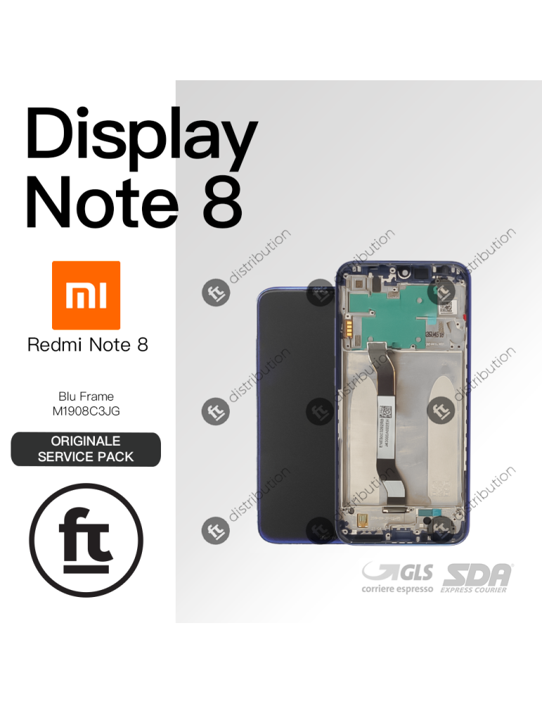 XIAOMI DISPLAY REDMI NOTE 8 M1908C3JG ORIGINALE SERVICE BLUE TOUCH VETRO