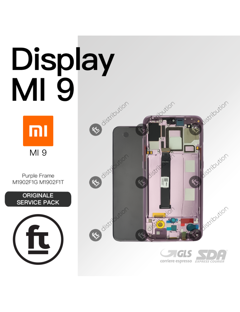 XIAOMI DISPLAY MI 9 ORIGINALE SERVICE VIOLA PURPLE SCHERMO TOUCH VETRO