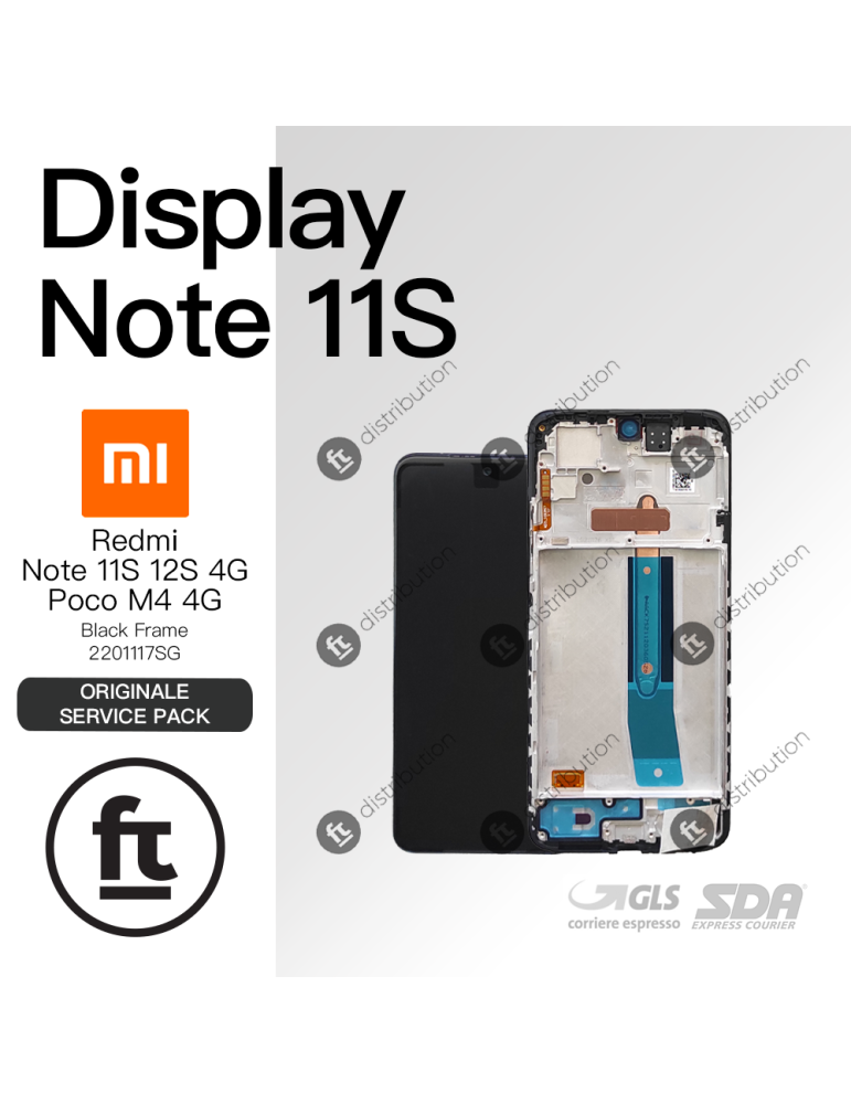 XIAOMI DISPLAY REDMI NOTE 11S 4G NFC/ NOTE 12S 4G/ POCO M4 PRO 4G 2201117SG ORIGINALE SERVICE NERO TARNISH BLACK