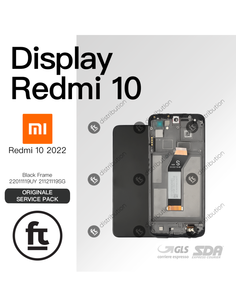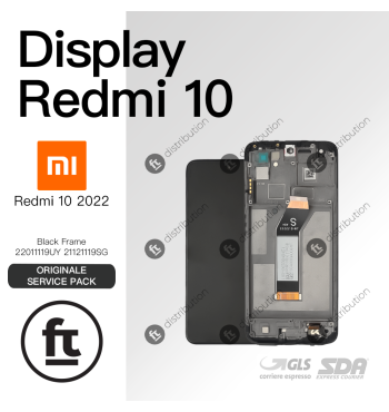 XIAOMI DISPLAY REDMI 10 2022 22011119UY 21121119SG ORIGINALE SERVICE BLACK TOUCH VETRO