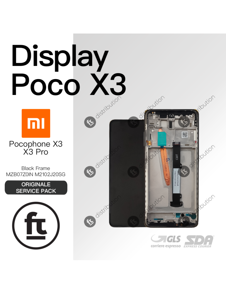 XIAOMI DISPLAY POCO X3 / X3 PRO ORIGINALE SERVICE FRAME NERO