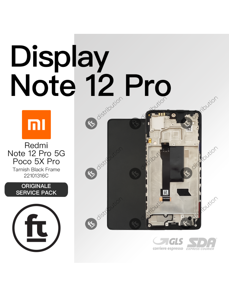 XIAOMI DISPLAY REDMI NOTE 12 PRO 5G/ POCO X5 PRO 22101316C ORIGINALE SERVICE NERO TARNISH BLACK